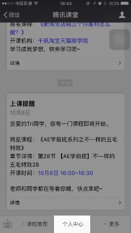 b) 微信搜索并关注公众号腾讯课堂,点击个人中心查看您已报名的课程,进入相应课程进行学习。