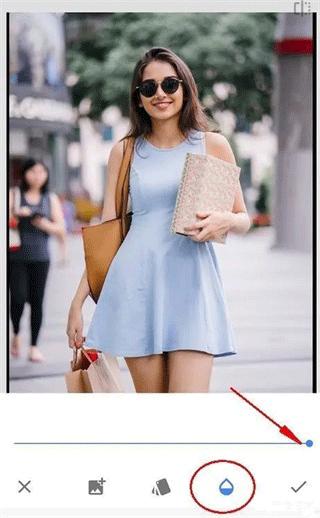 4、点击第三个不透明度工具,将不透明度设置为最大,将滑块移动到最右边即可,然后点击√对图片进行确定回到主菜单。
