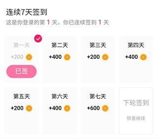 进入图虫APP,在「我的」-「兑换现金」-「连续7天签到」,每一次签到都能获得对应数额的金币。