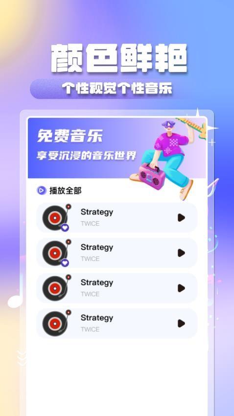 全民音乐大全是一款超级好用还完全不收钱的音乐播放器,里面藏着数不清的音乐宝藏和一堆实用功能,让听音乐变成一种享受。靠着它那海量的音乐库、聪明的推荐小帮手,还有操作起来超顺手的设计,成了音乐迷们口袋里随时都能掏出来的音乐宝藏。