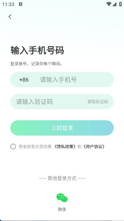 2. 输入手机号码和验证码,即可进入主页面,开始使用。