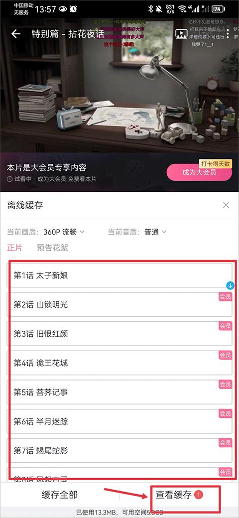 接着再选择你要下载集数即可,下载完成后点击查看缓存可以找到我们下载完成的视频