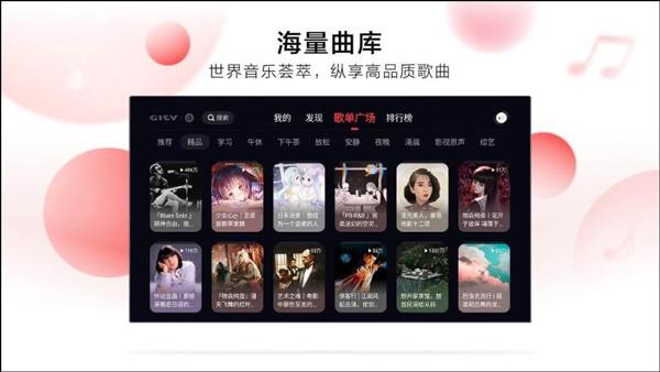与手机版、电脑版一致,TV版同样享有网易云音乐多达千万首的曲库,囊括百万无损SQ音乐,即时解决大部分电视音乐资源不全等痛点。此外,网易云还对不同年代、曲风、应用场景的曲目进行重新整理分类,便于用户快捷查找。