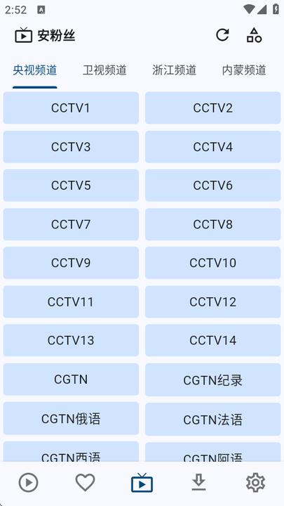 然后点击下面中间这个电视图标,就可以看到众多的节目源了