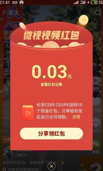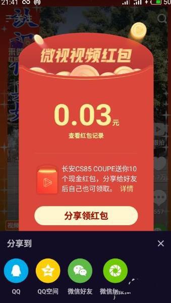 6、至此,即可看到刚刚刷视频领到的红包啦啦。
