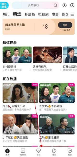 1、在腾云网下载最新版本的优酷,完成后打开软件,首页界面,点击会员
