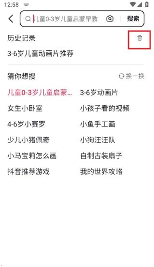 在搜索界面可以单击搜索框下面是删除按钮对搜索历史记录进行删除。