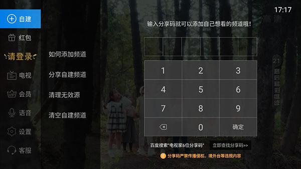 5、尽管软件里面的频道众多,但是用户还可以通过分享码来增加更多的电视节目;