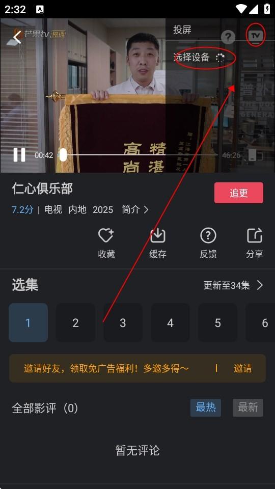 2、选择想要投屏的电视