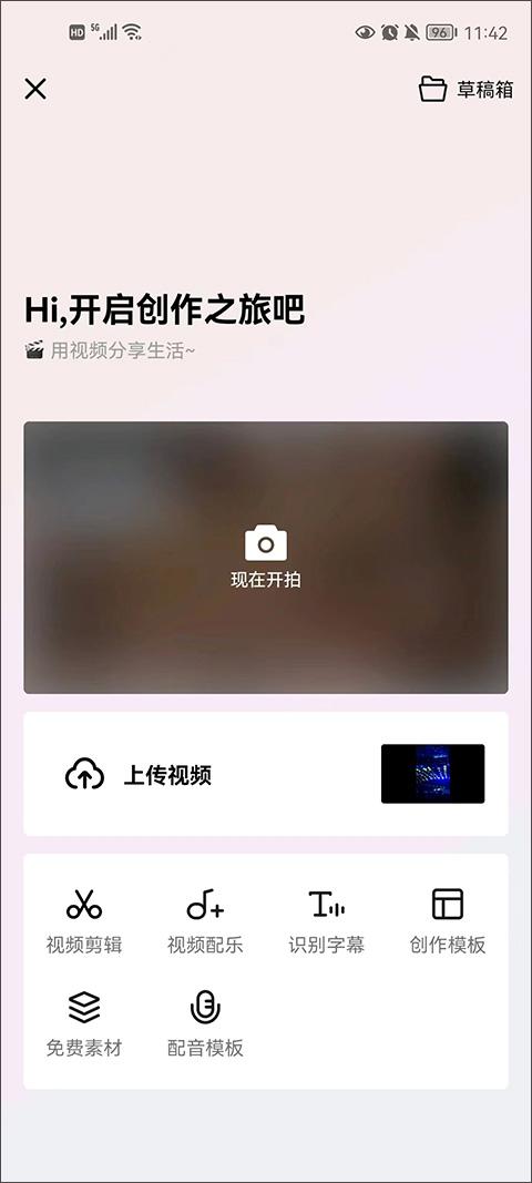 1、首先在app主页点击【发视频】功能,在点击视频剪辑,并且可以使用免费素材上热门。