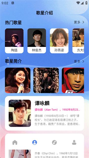 5、歌星信息推送:提供最新热门歌星介绍,方便用户了解自己喜欢的歌手及其作品。
