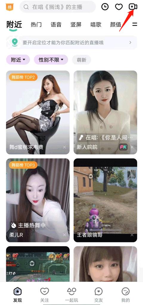 1、进入软件发现这个【页面】,点击右上角的直播视频图标。