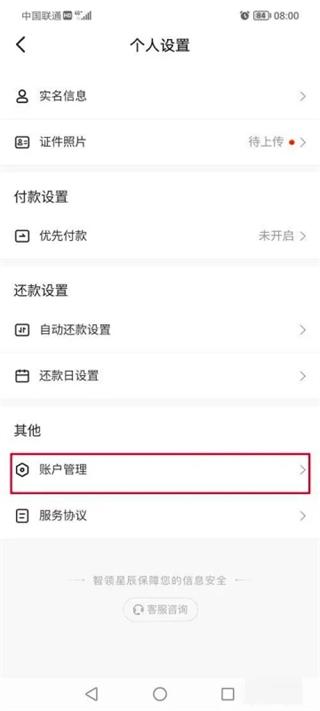 5、进去个人设置之后,点击账户管理;