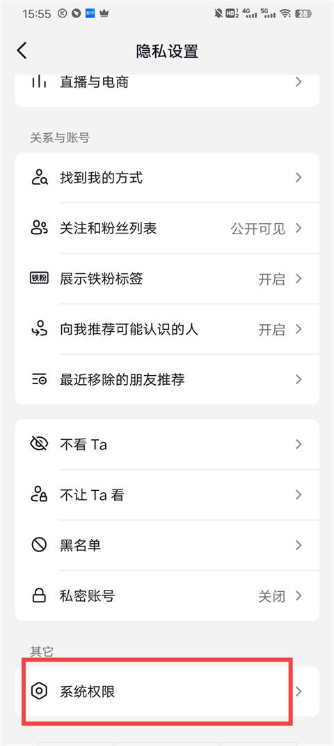 5、进入隐私设置后,一直往下话,到最后我们点击系统权限;