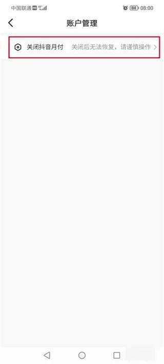 6、进去抖音账户管理之后,点击关闭抖音月付;