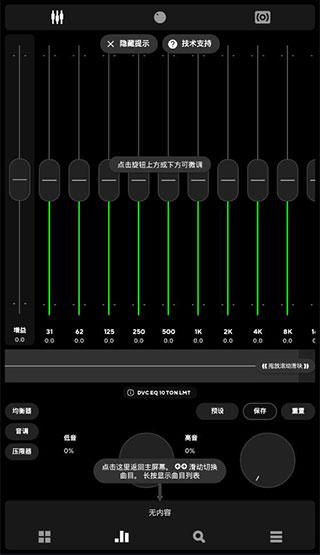 3、下图是均衡器页面,你可以点击旋钮上方或下方进行微调,根据自己的喜好可以设置为多种不同风格。