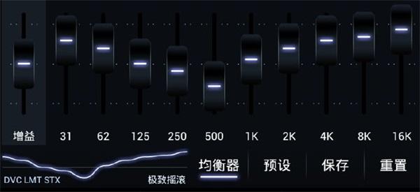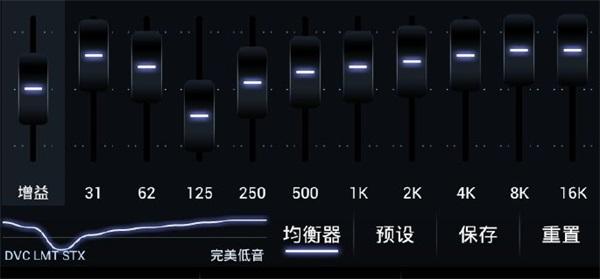 具体设置如下(如图):第一是增益,增益往后共有十个频段,从左至右是低音到高音,我的设置方法从均衡器的初始状态开始,即在中间,设值为0,往下按一下的话就是-1,往上按一下则为+1,依此类推。