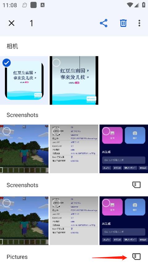 2、长按图片,点击右下角的文件图标