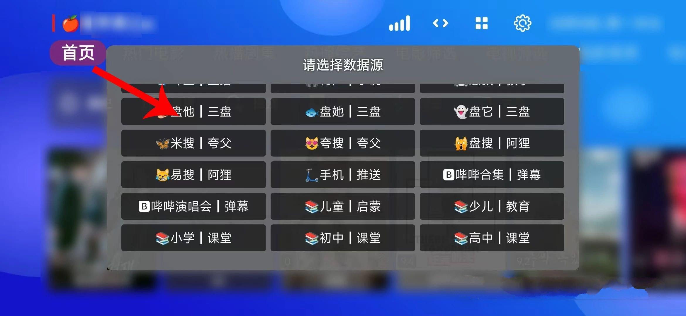 2、进入设置页面点毒苹果即可弹出多种内置源。