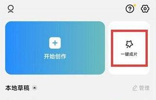 1、打开软件,在首页当中,找到右侧一键成片。