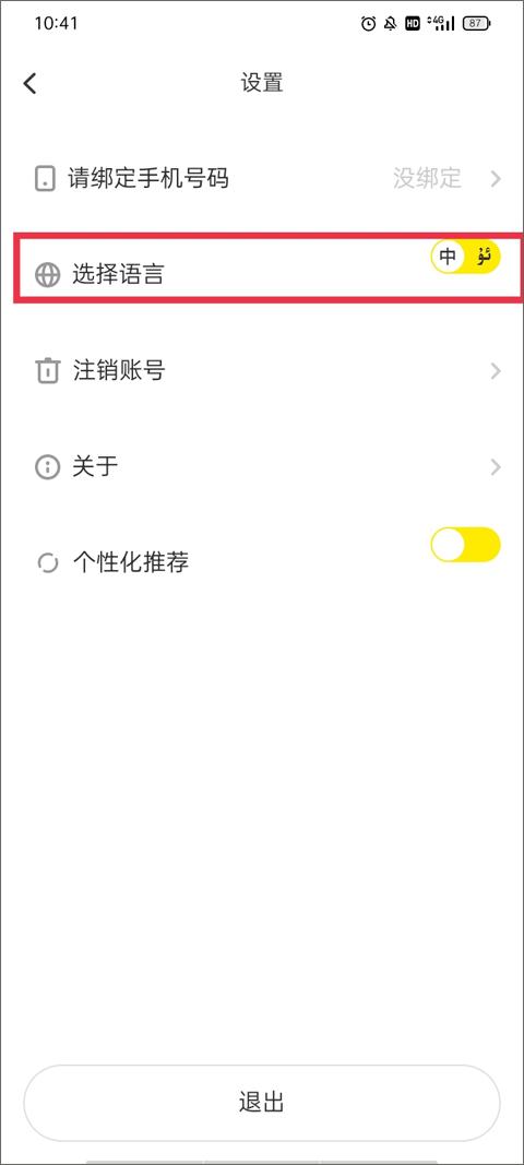 方法二:进入【我的->设置->选择语言(中文/维语)】