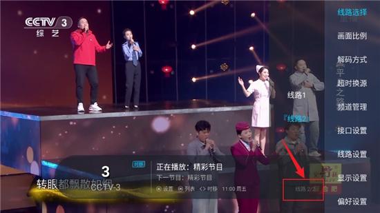 1、进入菜花直播主界面,点击遥控器的左右按键进行直播源线路的切换