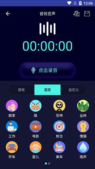 3、在录音功能中,用户可以选择音效、混音以及自定义;