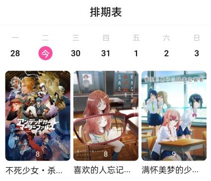 3、除此之外,软件内还有专门的排期表,让大家知晓今天有哪几部番剧更新了。