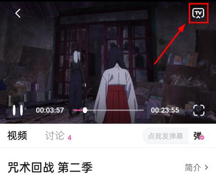 2、待正式播放后,播放界面的右上角就有投屏可以设置,点击即可使用此功能。