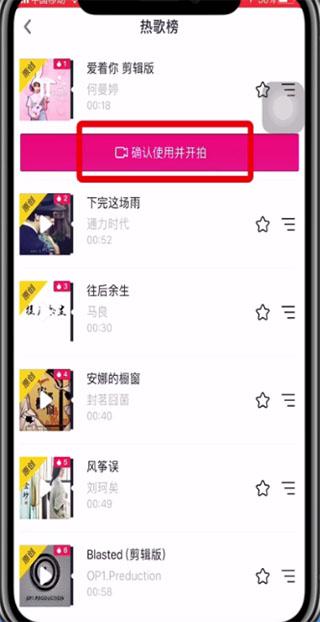 5、选择喜欢的音乐,点击【确认使用并开拍】