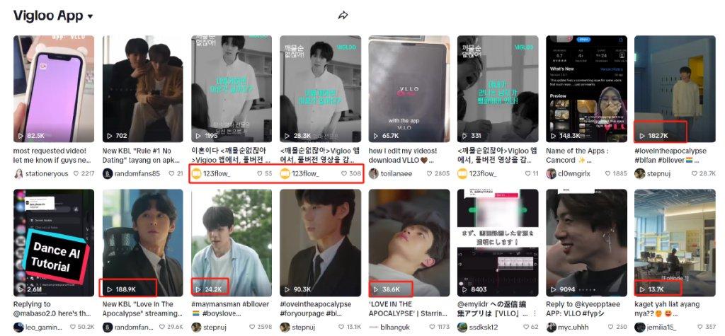 蓝海不等于无脑冲,更需要小心试错从营收和下载表现来看,Vigloo目前还并未展示出过人的竞争力,但鉴于其集齐了海外本土厂商研制、音频社交“巨头”做短剧、日韩蓝海市场这三个最具噱头的特点,所以我们也想看看Vigloo到底能不能成为“从内部突破的第一人”。目前来看,Vigloo尚未展示出竞争力的主要原因有几点。首先是在内容层面,可以看出Vigloo提供的50部短剧均未脱离韩国长剧的特点,比如滤镜、剧情的drama程度,以及其内容题材看似很丰富,但也是长剧经常选用的题材,所以并未与长剧本身形成差异化的竞争点。不过,作为第一个试水短剧赛道的产品而言,Vigloo选择已经被市场接受的题材和内容进行小心尝试是合理的,后续也可以通过市场反馈不断迭代,试出最适合本土市场的题材。其次,在营销侧,Vigloo的宣发买量还未开始发力,在TikTok、YouTube等平台上均尚未建立相关的官方号。以TikTok为例,#vigloo标签下仅有20个作品,其中50%以上的作品在@123flow这一账号下,在3天前开始进行集中频率的投放。此外,其它与Vigloo中剧集相关的短视频并未带有#vigloo的标签,而是按照视频的类型添加了关键词,大多以“bllover”等LGBTQ题材来吸引眼球,观看最高已达到18万播放量。从内容片段来推测,虽然并未添加标签,但推广买量的可能性很大。根据第三方数据,Vigloo上线以来在iOS端的推广下载量为1700+,占比为53.39%,自然下载为1500+,占比为46.61%。作为对比,MoboReels在iOS端投放单月广告素材就超过10万条。