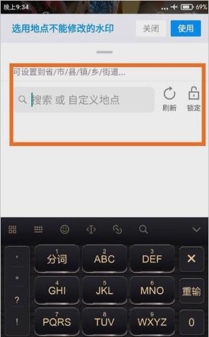 5、最后我们点击拍照页面的定位标志,将自己想要输入的地址输入进去就好啦。