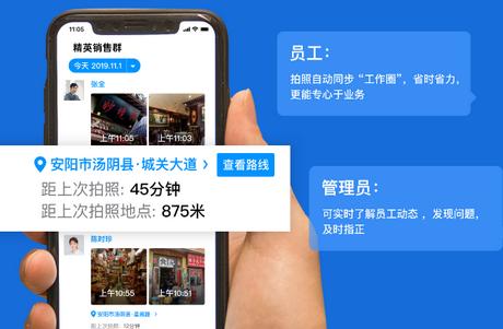 成员拍照后,照片可自动同步上传,保存到团队工作圈当中。管理员可实时查看浏览照片。