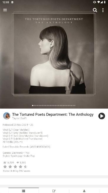 Discogs是一个专注于音乐收藏和销售的平台,它不仅是一个在线音乐数据库,也是一个黑胶唱片的销售市场,最初主要收录电子音乐,后逐渐扩展至嘻哈、摇滚、爵士等多种流派,现已提供超过1500万张专辑和800万艺术家的信息,每天持续增长,对音乐感兴趣的用户可以下载试试。