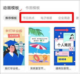 1、进入app首页往下拉,可以看到不同场景分类的模板,如果在这些分类中没有找到想要的模板,可以左滑分类找到【更多模板】进入【模板中心】