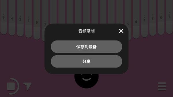 5、设置好后,退出设置页面,然后就可以跟着曲谱练习弹奏拇指琴了,录制好的音乐还可以保存和分享