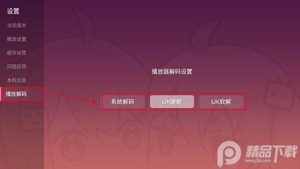 2、在播放之前各位可以进入到设置中,在播放解码中根据电视性能进行调整