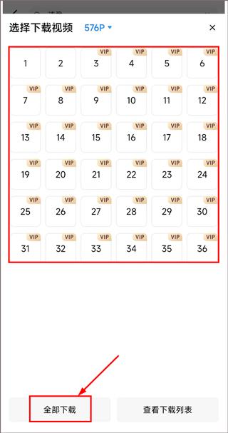 3、勾选需要下载缓存的剧集,或是点击【全部下载】