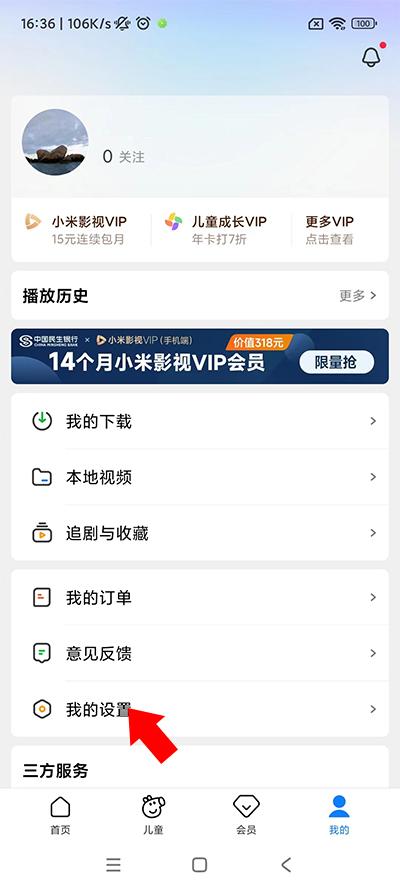 1、打开小米视频app之后,点击右下角“我的”进入个人界面