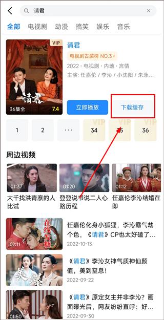 2、搜索到该节目后,点击【下载缓存】