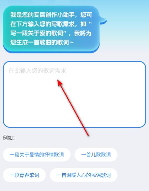 下载进入ai歌词多多软件,在这里输入歌词需求