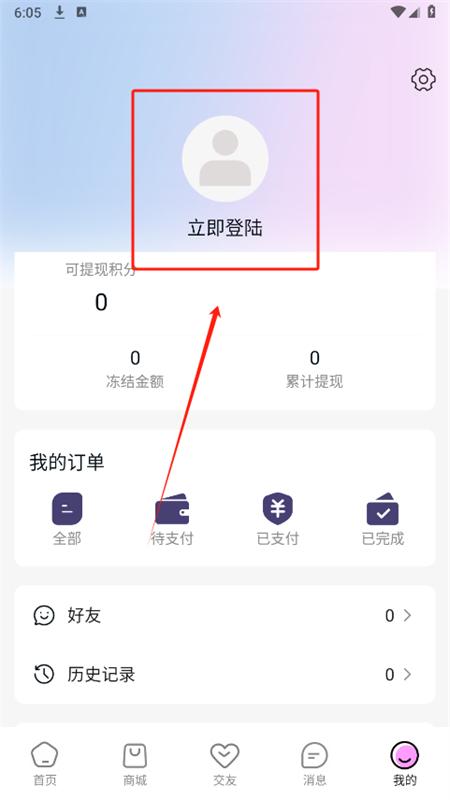 1、打开软件后,在“我的”页面点击“立即登录”。