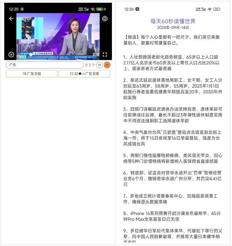 电视台太多了不好找?还可以直接搜索!没时间看新闻,还有每天 60秒新闻简报!