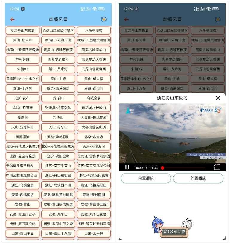 还可以看全国大几十个景区的摄像头直播!