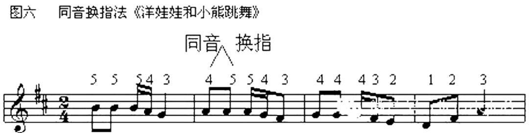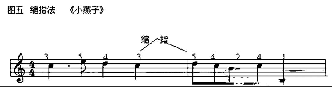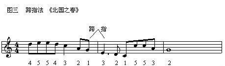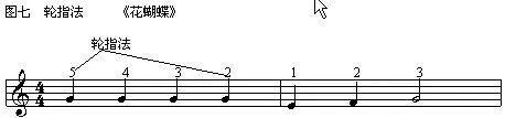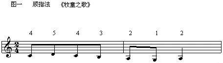 (一般音域在五度内)这种指法手指间距小,无须伸张,(年龄幼小的琴童需适度扩张)使手型保持自然松弛的状态。这是一种应用最多的指法。如: