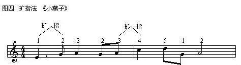 出于对乐句流畅的要求,需要扩大两指之间的距离时所采用的指法。如: