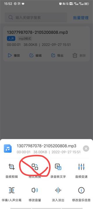 2、点击编辑,出现下方各种功能,选择格式转换;