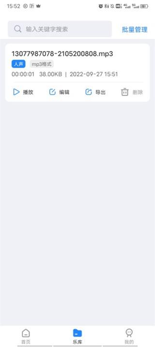 1、进入软件后,进入乐库,或是选择其他你想要转换的音频;