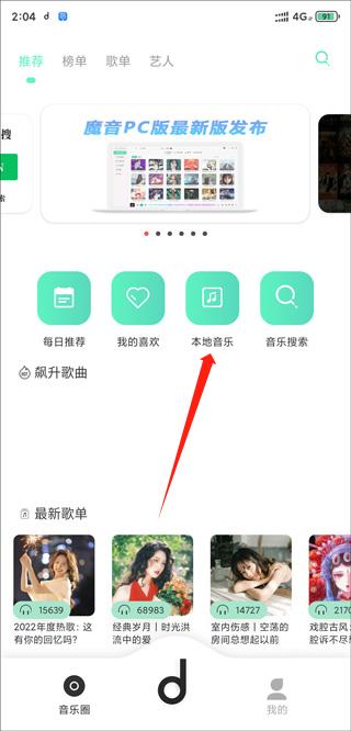 2、进入本地音乐,会自动扫描本地的音乐,进行添加