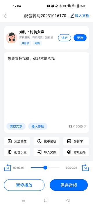 总之,配音工厂作为一款智能化的配音app,提供了完善的、全面的配音方案,能够满足不同用户群体的需求,加快配音制作过程,让用户在配音中感受到更多乐趣和快感。